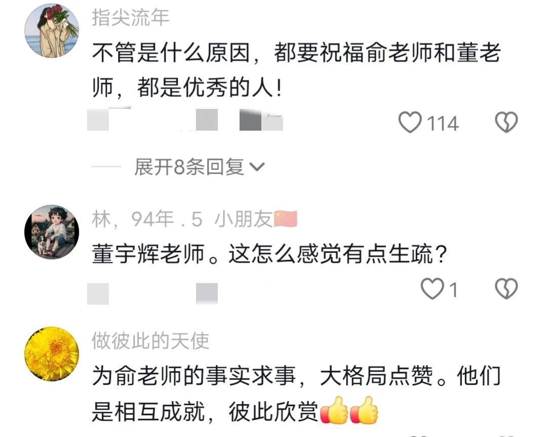 许多网友暗示俞诠释其实很夺目培养年青东说念主,既然对方羽翼丰润,也可以去飘零更高的太空。要是莫得他,董也不行能有这样高真实立,两东说念主算是相互周密。俞诠释也有很高的神色,确乎令东说念主确信。